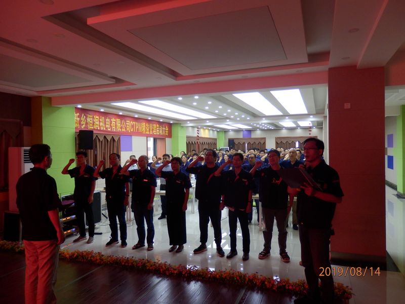 而后顧問師對(duì)精益管理的內(nèi)容進(jìn)行詳細(xì)的講解,隨后全體員工進(jìn)行了宣誓儀式,總經(jīng)理講話并宣布新鄉(xiāng)市恒潤(rùn)機(jī)電有限公司CTPM精益管理項(xiàng)目正式啟動(dòng)。